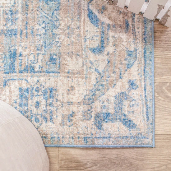 Create the right amount of visual interest with the Otto Contemporary Geometric Medallion Indoor Area Rug. Comfort and style find harmony in this refined design through a neutral palette of bronze and blue. Otto’s medallion pattern is modernized by the defined details of geometric motifs and florals accents that pokes through a Tan base to bring character and charm to any space. The extra low 0.11-inch pile height is easy to clean while being sturdy and durable enough to handle some of your most high-traffic indoor areas such as kitchens, mudrooms, basements, and entryways. The long-lasting 100-percent Polyester construction combines subtle sheen and a velvety soft underfoot to lend a calming look and feel that will blend into any home dΓ©cor.