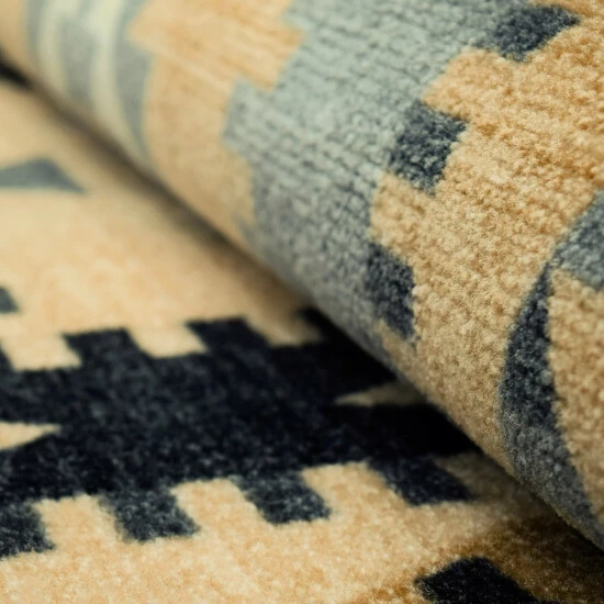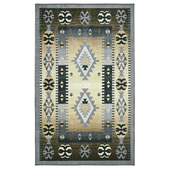 Traditional Ikat geometric print mixes with a bold Southwestern-style in the Parrish Area Rug. Well-made with quality, 100% Nylon fibers and a 0.18″ pile height, this rug can handle high-traffic areas of your home while remaining soft and long-lasting. This design features a scattered diamond motif in earth tones of blue, cream, and sienna across a neutral beige background. Each Parrish rug was designed to attract attention to your home or office space with a striking look. This items are machine washable & rug-able.