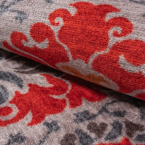 Incorporate the enchantment of a garden to your decor with the Redondo Area Rug. Well-made with quality, 100% Nylon fibers and a 0.18″ pile height, this rug can handle high-traffic areas of your home while remaining soft and long-lasting. This design features a floral damask pattern in shades of grey and bronze that repeat over a muted taupe backdrop. Each Redondo rug was designed to attract attention to your home or office space with a striking look. This rug is machine washable & rug-able.