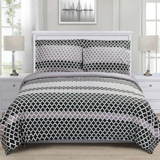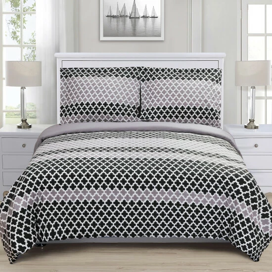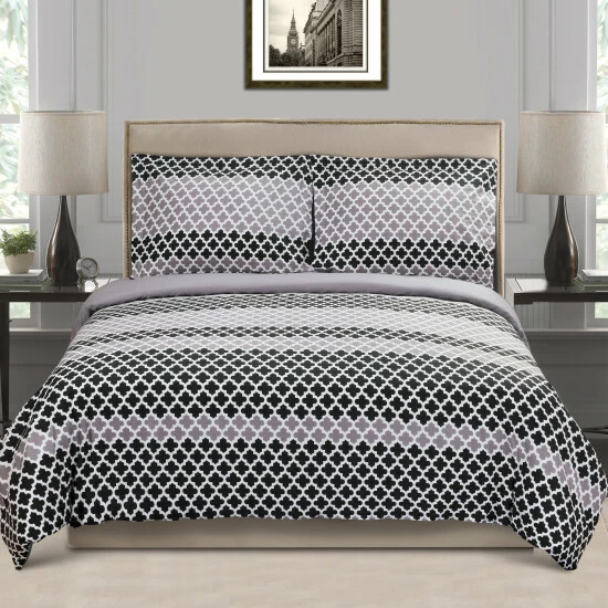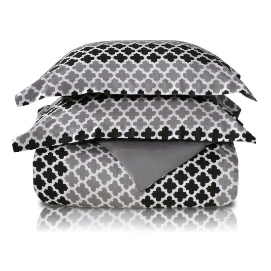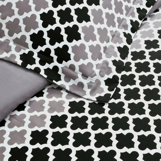 Dress up your bedroom with modern flair with this Sutton reversible cotton duvet cover set by Miranda Haus. A black and grey trellis print turns your bed into a bold focal point, and 100-percent cotton offers softness and easy care. Each set includes a duvet cover and two shams for a cohesive look.