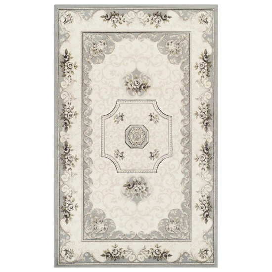 Dress your room in the classic and glamorous pattern of the Lia Indoor Area Rug. The traditional, well-balanced design features a sophisticated blend of florals and scrolls with soft touches of various geometric motifs. This formal piece is framed by a beautiful, coordinating border to offer a tailored finish to this lovely piece. Boasting a 0.31-inch rug thickness, this ultra-soft underfoot is crafted from 100-percent Polypropylene fibers with a durable jute backing to make this rug colorfast and easy to clean.