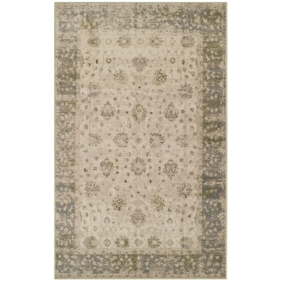 Create instant appeal in any room in your home with the Chung Indoor Area Rug. The vintage-inspired floral motif showcases hues of gray and green that pokes through a creamy beige backdrop to lay the groundwork for traditional style. Ideal for homes with children and pets, this family-friendly area rug is crafted from a durable 100-percent Polypropylene fiber construction with a 0.31-inch rug thickness that is perfect for everyday use.